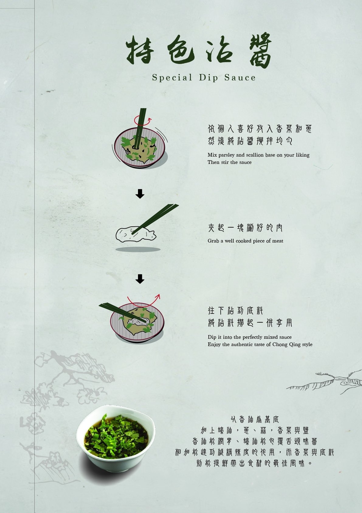 ▼服務人員會先示範如何搭配沾醬享用,首先先將沾醬攪拌均勻後,將肉片往下撈起底料,等到肉片都被沾醬包覆後、瀝乾香油就可以享用啦!
