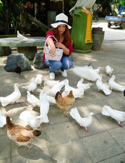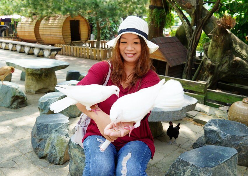 ▼這裡的鴿子看到食物就立刻包圍住我們,連雞隻都跟著跑過來覓食~~