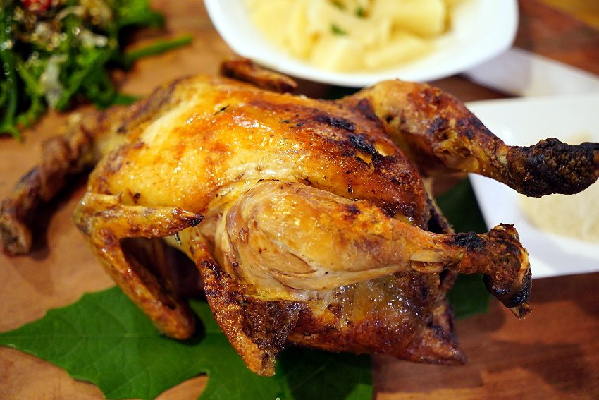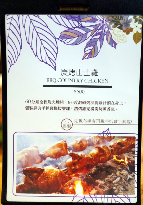 ▼炭烤山土雞,60分鐘全程炭火燻烤,並搭配360度翻轉烤法將雞汁滾在身上,既可享受手扒的樂趣,烤雞也會充滿燻烤香氣!