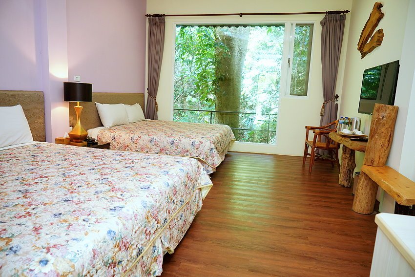 ▼這裡大多以四人房為主,如果是雙人入住也沒問題唷!窗外的美景每一間都不一樣,像這間就可以看見壯闊的大樹,整片超大玻璃讓視野更寬敞無遮蔽!