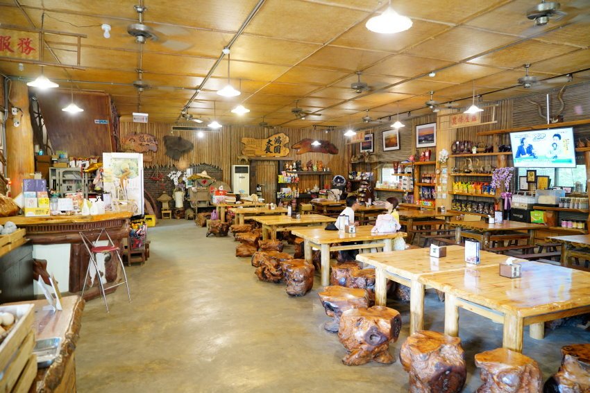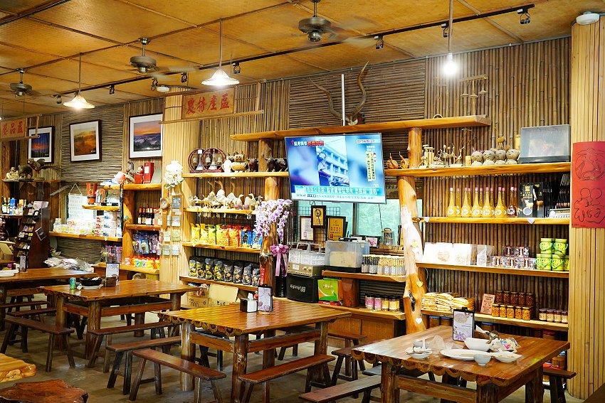 ▼這裡就是用餐空間,座位區也都是採用原木石塊所打造,寬敞又明亮!一旁也有販售伴手禮,有興趣的朋友也可以順道買回去跟親朋好友分享!