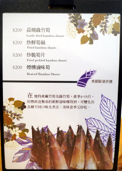 ▼最厲害的就是他們家的筍子大餐啦!自家產的麻竹筍供應期從4月到10月,也有不少饕客都是專程為了他們家的筍子料理而來,大家可要保握時間來品嘗!像這幾道分別是金沙鮮筍、煙燻滷味筍、三杯筍等料理,其中大口最愛的就是煙燻滷味筍,吃起來鮮嫩又甘醇,帶點煙燻香氣的鹹甜滋味好下飯啊~~口咩最愛的則是三杯筍,吃起來既有三杯香氣,還能適時將竹筍的鮮甜襯托出來,整個很合拍啊!金沙鮮筍也滿開胃的,搭配鹹香甘醇的鹹蛋更是入味好吃,每道都好吃啊(流口水)!!