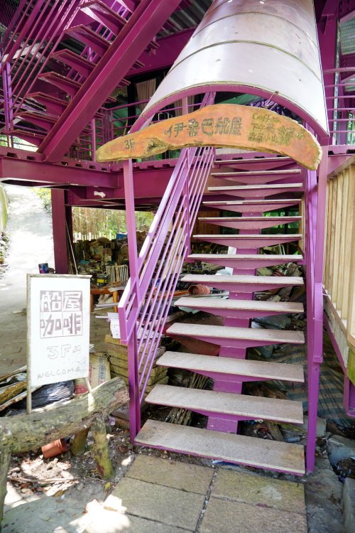 ▼腳程好的朋友可以挑戰這條通往觀景樓的階梯,看起來挺高挺陡的,大家也要多多注意自身安全唷!另外也還有高空滑車、繩索吊橋等體能設施,有興趣的朋友都可以挑戰看看!玩累了也可以來一趟伊魯巴船屋喝個咖啡、享用下午茶~~
