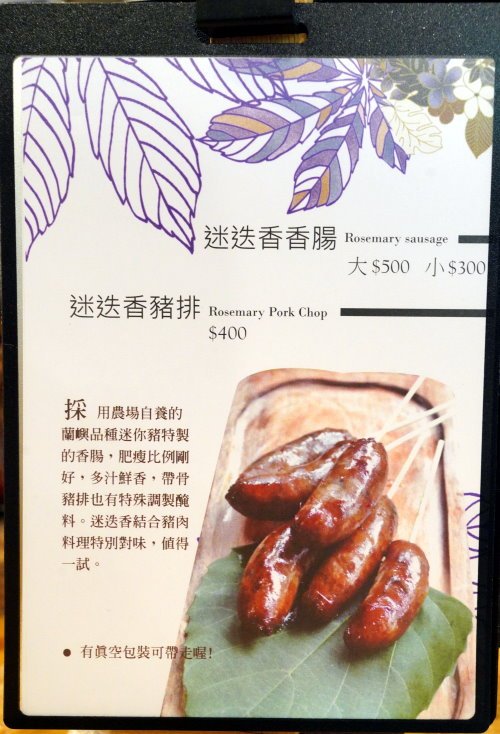 ▼迷迭香香腸,吃起來有點類似原住民的馬告香腸,差別在於裡頭用的是迷迭香葉,吃起來清香爽口,肥瘦適中,讓人一口接一口!