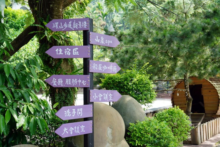 ▼農場佔地非常寬敞,還有指標幫助大家認路XD這裡的設施還不少,除了可以住宿、會議之外,還有餐廳、咖啡廳等,想要爬山、訓練體能、泡泡山泉SPA的朋友也沒問題!