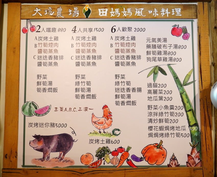 ▼位於台南新化的「大坑休閒農場」,是一處由三代同堂共同經營的農場,蔡家阿公阿嬤原來在這塊山坡地種竹筍、種蔬果、養雞,直到第二代蔡爸蔡媽接手後從事畜牧業,並逐漸轉型為休閒農場,農場的食材都是自家生產,蔡媽精湛的手藝加上三位女兒的專長,讓許多饕客都為了他們家的餐點與熱情而來,也很適合一家大小一起來玩耍的好地方!這裡還有附超大停車場,開車來玩的朋友也很方便~~