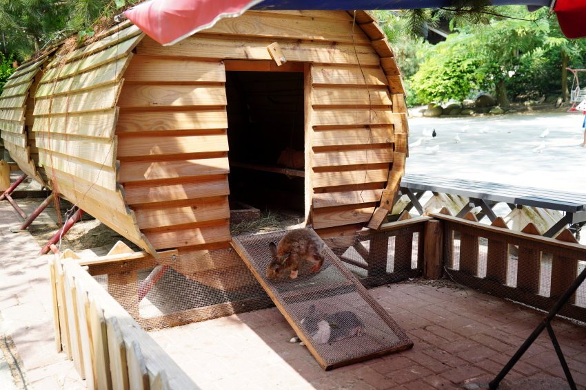 ▼這裡還有小兔子跟天竺鼠的家,還有斜梯讓牠們可以爬上爬下,整個住得很豪華啊!