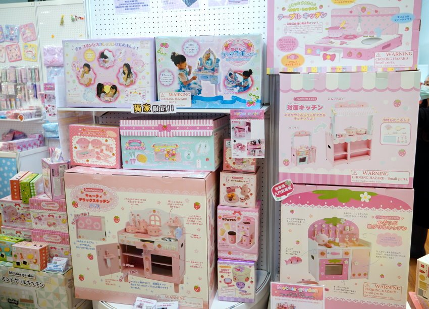 ▼一旁還有日本知名雜貨品牌CREATIVE YOKO旗下三大系列品牌《Mother garden》、《Sirotan-海豹小白》、《PET PARADISE》也同步進駐,其中像是Mother garden就很受小女生喜歡,尤其家家酒系列更是超熱賣,現場也有擺放給大家試玩,只見小女生果然立刻衝上前去了!