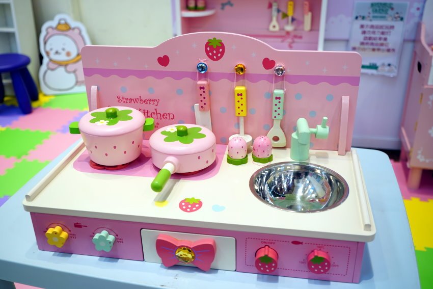 ▼粉嫩的木製廚台讓小女孩不失心瘋也很難,有興趣的朋友也可以趕快來訂一組唷!
