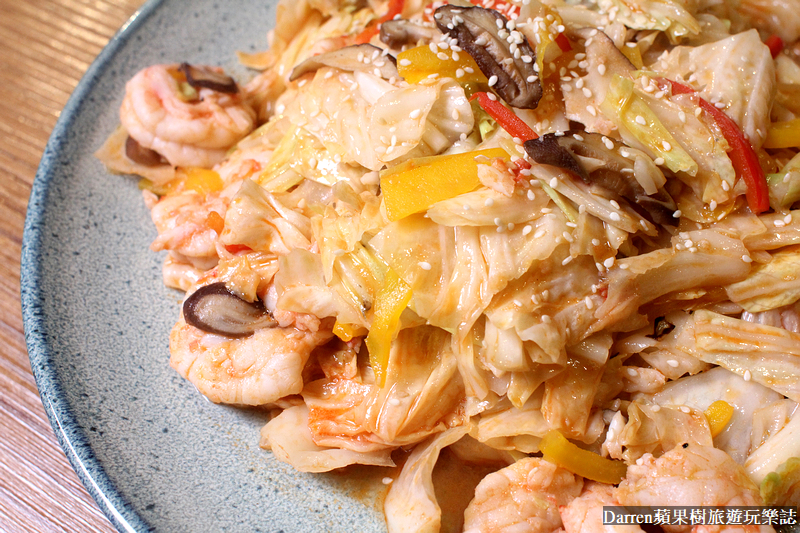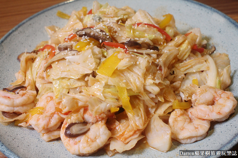 ▲▼邱家兄弟白蝦.酵釀烏醋.有機蔬菜,使用來自邱家兄弟生態級無毒水產育成中心的白蝦,現在很注重產銷履歷食材溯源,而邱家兄弟的食材就會注重品質這塊,法租界餐廳主廚對於東西品質要求很高,看到報導提到主廚Adam用態度看待食材商,買菜看人品態度很重要,這句話後座力很強,也可以知道法租界主廚不論料理做事待人等都很注重誠信,回到這道料理,白蝦鮮甜扎實又大尾,高麗菜則是用烏醋和蝦膏炒出酸香脆口