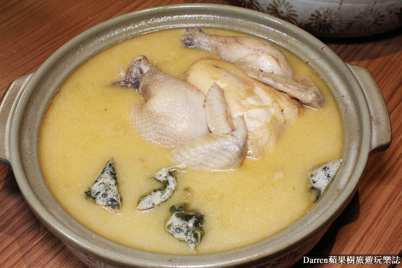 ▲▼十年一劍黃金雞湯,沒喝過法租界雞湯別說過你喝過最好喝的雞湯,很多人都知道十年磨一劍,形容多年刻苦磨練,而這碗黃金雞湯雖然沒有到十年,但是料理製作過程也是極為複雜刻苦,看起來濃郁的雞湯,喝起來香而不膩口,沒有過多調味使用宜蘭大同山區高品質的馥桂雞,完全靠雞和鹽巴類似法式澄清湯的作法,經過10小時燉煮到雞肉軟綿,湯頭有著滿滿膠質精華,如果太久沒有動的話,表面還會結上一層凍