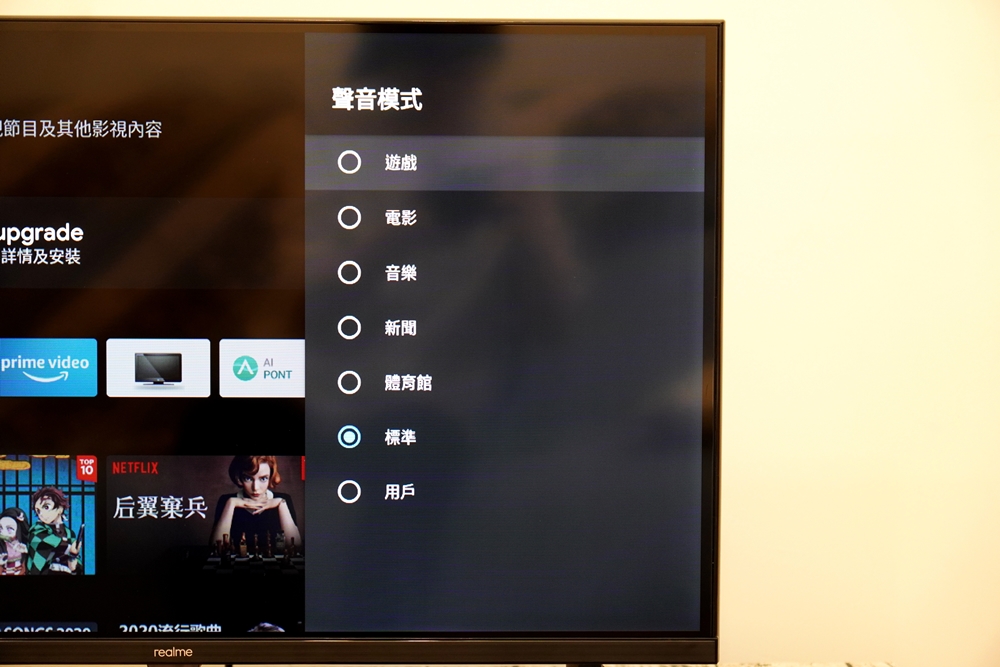 由於支援杜比音效的環繞音場效果,還可以打造出類似電影院的豐富立體聲,如果會利用電視玩遊戲的話,也可以從聲音模式裡切換遊戲模式,讓遊戲音效能呈現更澎湃激昂的感覺。