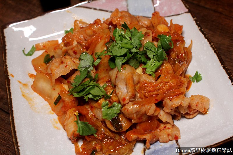 春霞純米酒赤搭配泡菜炒豬肉的表現也不錯,泡菜的甜味會變明顯,豬肉很嫩口好吃,只能說闆娘是香菜控,連這道也有香菜出現