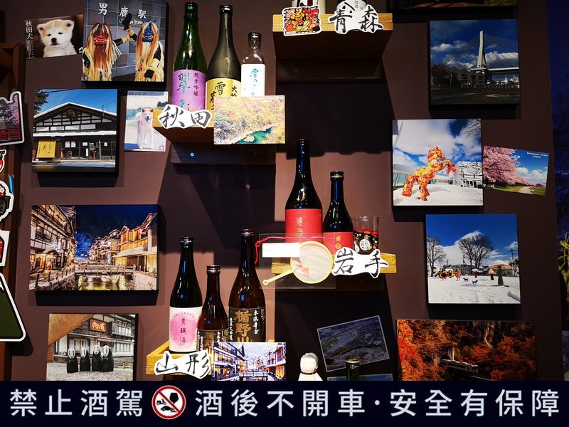 牆面非常用心掛滿許多日本東北景點,還把日本東北縣的各地清酒展示出來,光是看到日本景點加上清酒,就好懷念日本啊!!不知道何時才是繼續我的旅行酒吧計畫啊XDD,好想衝日本酒造啊