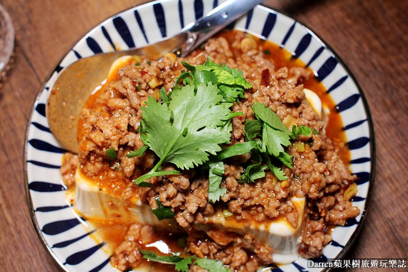 川菜麻婆豆腐,上面滿滿肉末、辣椒和花椒等等,順滑豆腐麻辣口感,真得是非常經典熟悉的好味道,上面還有香菜XD,闆娘是個香菜控,如果要不加香菜也可以提前說唷