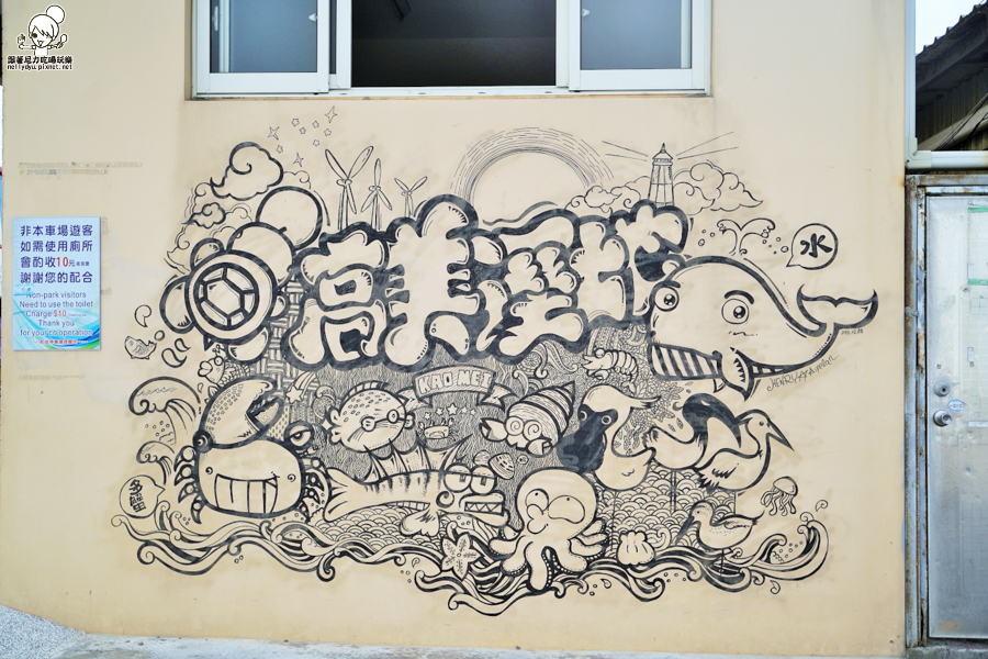 超可愛的高美濕地塗鴉牆,很逗趣的美式風格