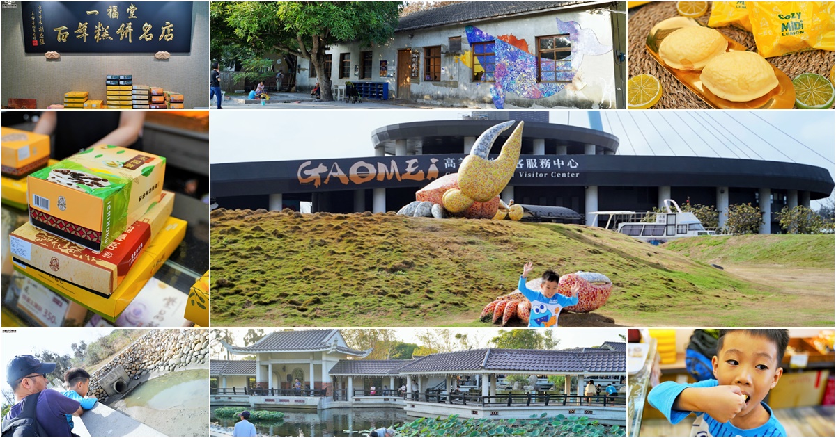 高美濕地遊客中心/高美濕地 –>一福堂 百年伴手禮(必買檸檬餅、菠蘿蛋黃酥、創新珍珠奶茶餅)–> 高美濕地遊客服務中心 –>