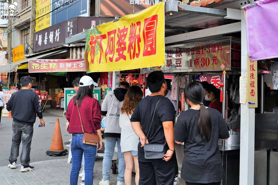 廟口旁被人潮包圍的就是老字號 阿婆粉圓冰