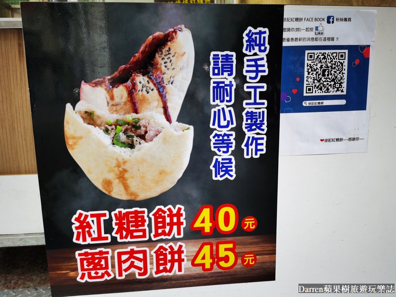 徐記紅糖餅菜單MENU只賣兩種,紅糖餅40元跟蔥肉餅45元,大多數的人都會點紅糖餅,現包現擀所以要稍等一下
