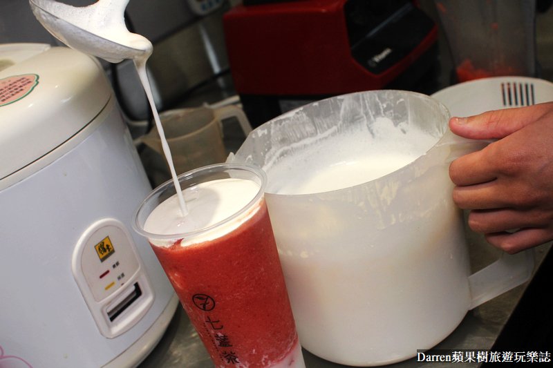 七盞茶的鮮奶是使用六甲田莊的鮮奶,在網路上鮮奶評比,其中六甲田莊鮮奶就有不少死忠粉絲,就連咖啡控也有對於六甲田莊鮮奶愛好群