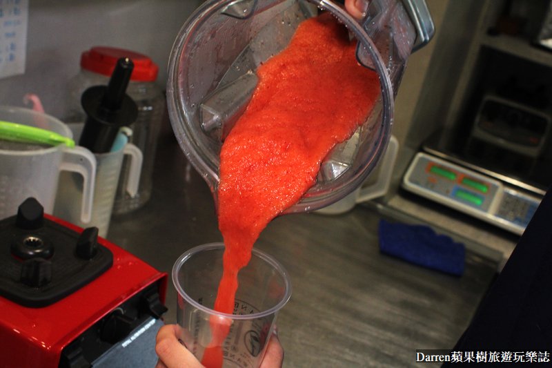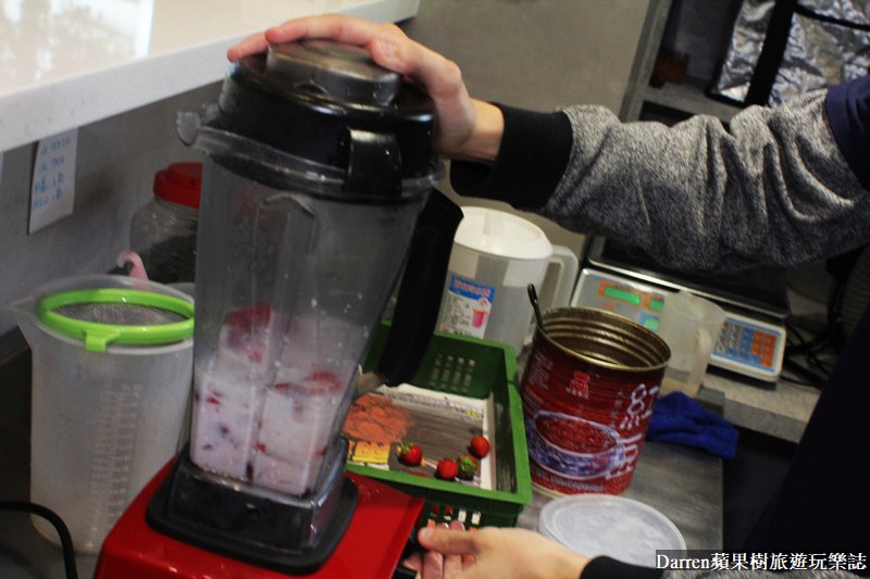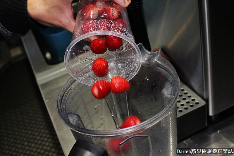 看到滿滿新鮮草莓杯,被果汁機打成汁,感覺滿滿草莓精華都在杯子裡,而且還是新鮮草莓+六甲田莊這種強強聯手組合怎麼會不好喝呢XD