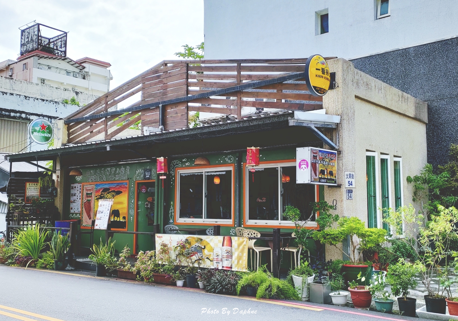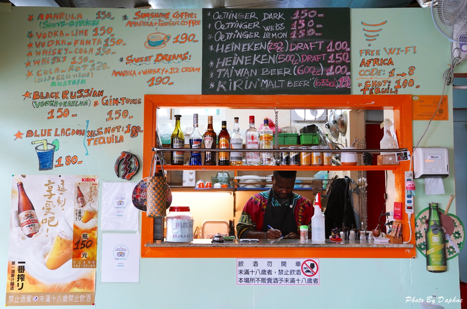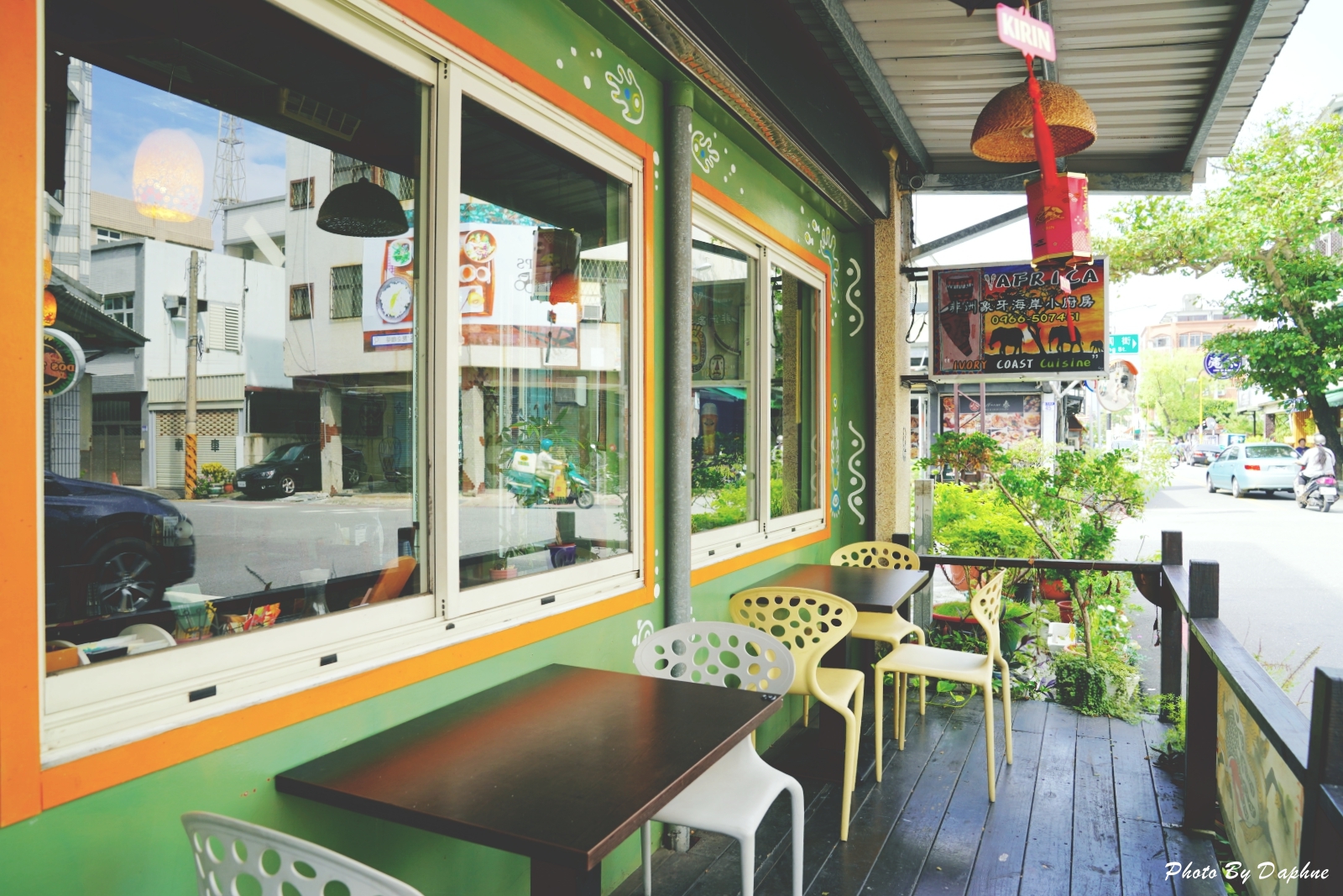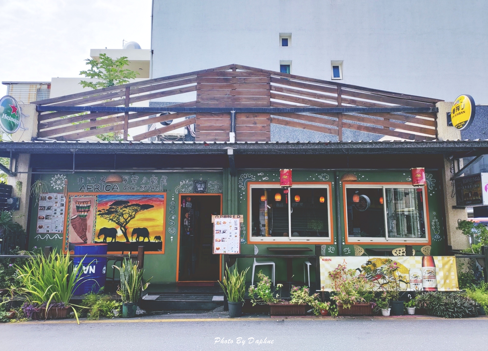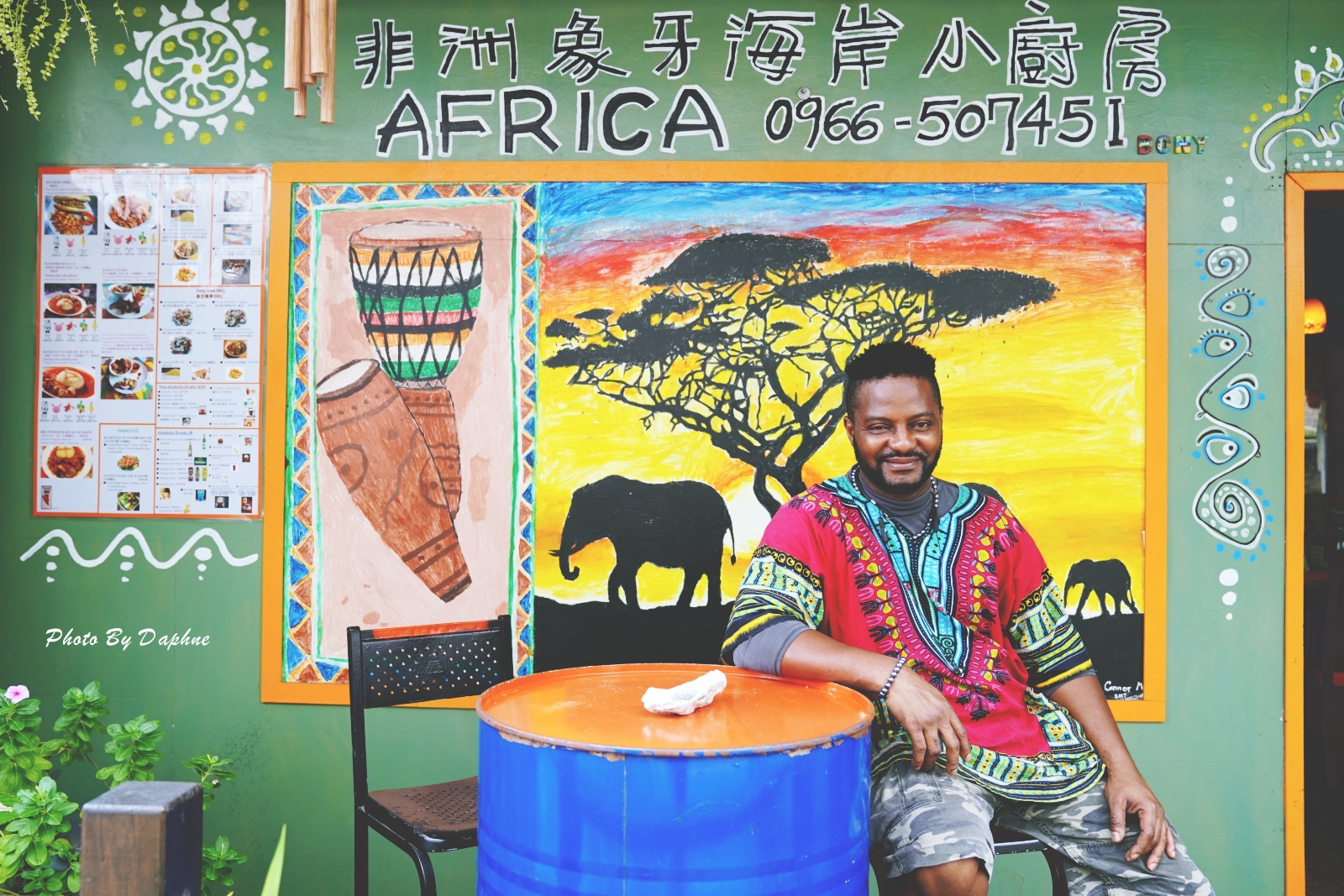 ▼店外貼了非洲象的剪影圖,還有老闆擅長的非洲鼓圖案。