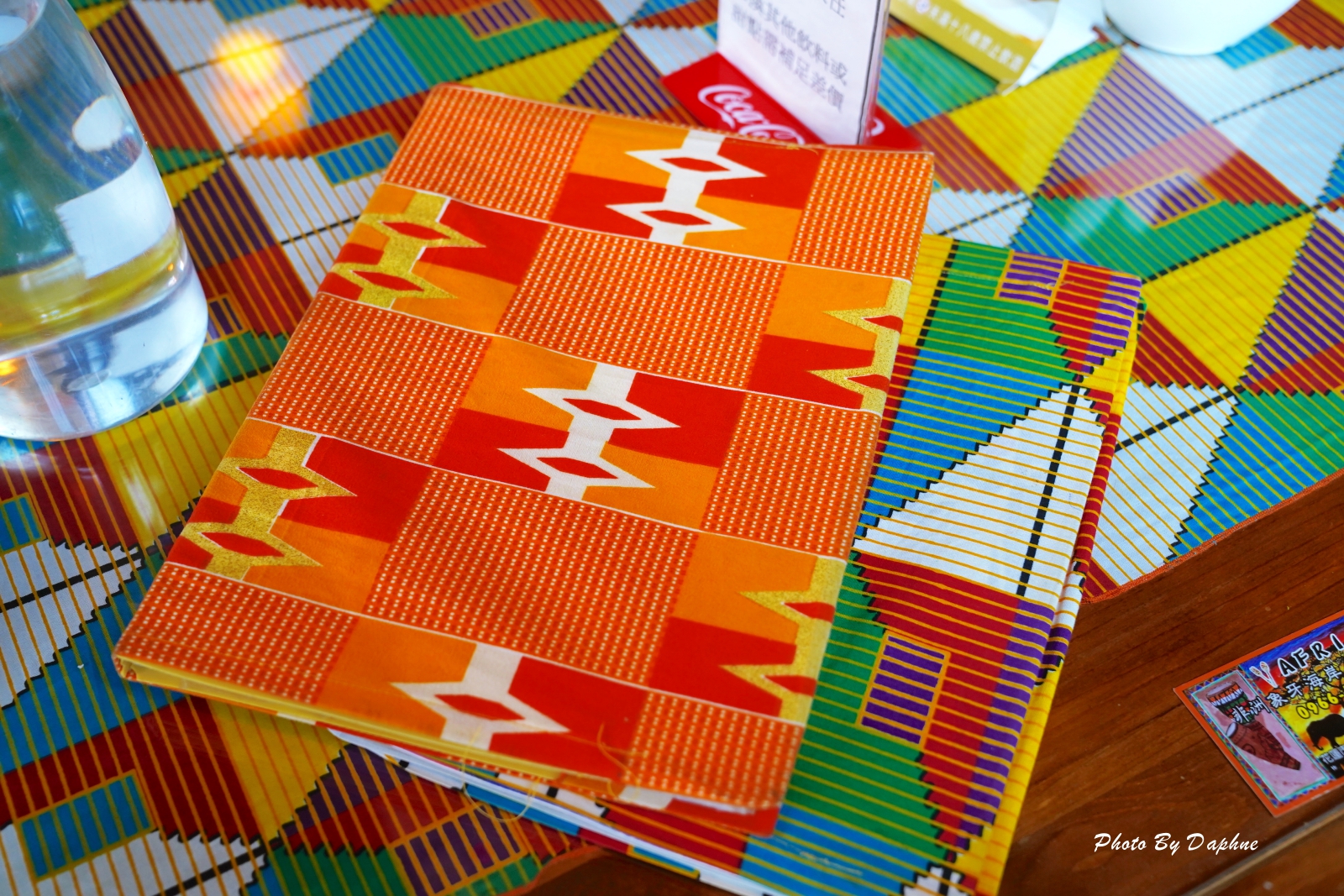 ▼菜單外的封套使用非洲特色布料包覆。