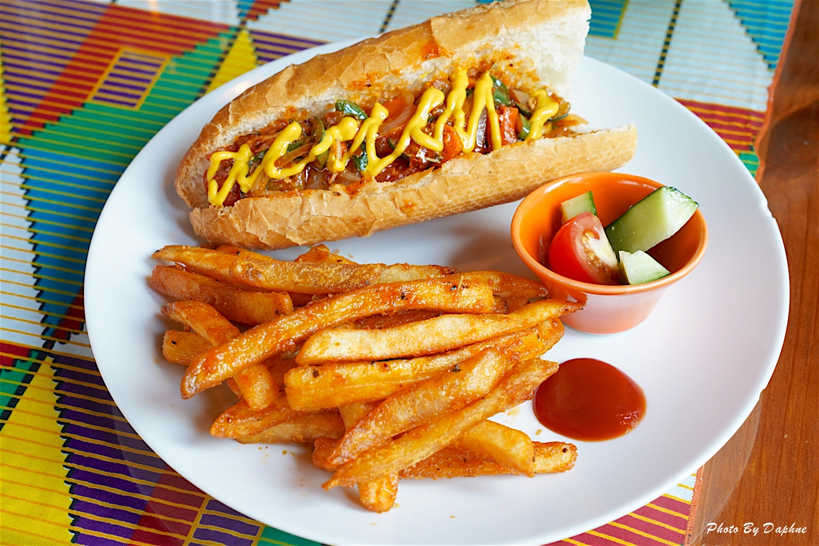 ▼典型的南非香腸是碎牛肉與多種香料製作成的,但店家很貼心的提供豬肉、雞肉供選擇,烤得香酥有勁的法國麵包夾入香腸。南非香腸跟泰北香腸有點異曲同工之妙,同樣有豐盈香料味,讓肉香與香料融合,除此之外,法國麵包內部,看起來還有加入拌炒的一些洋蔥、番茄等配菜,也淋上黃芥末,整體口味偏重,但容易一口接一口吃光光,有美式速食的豪邁感。