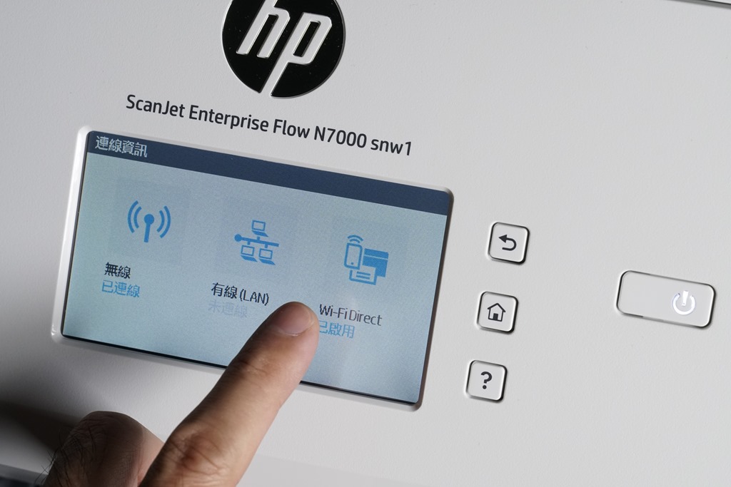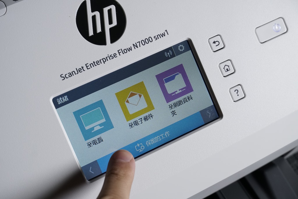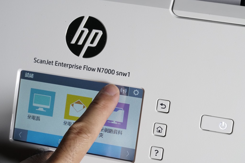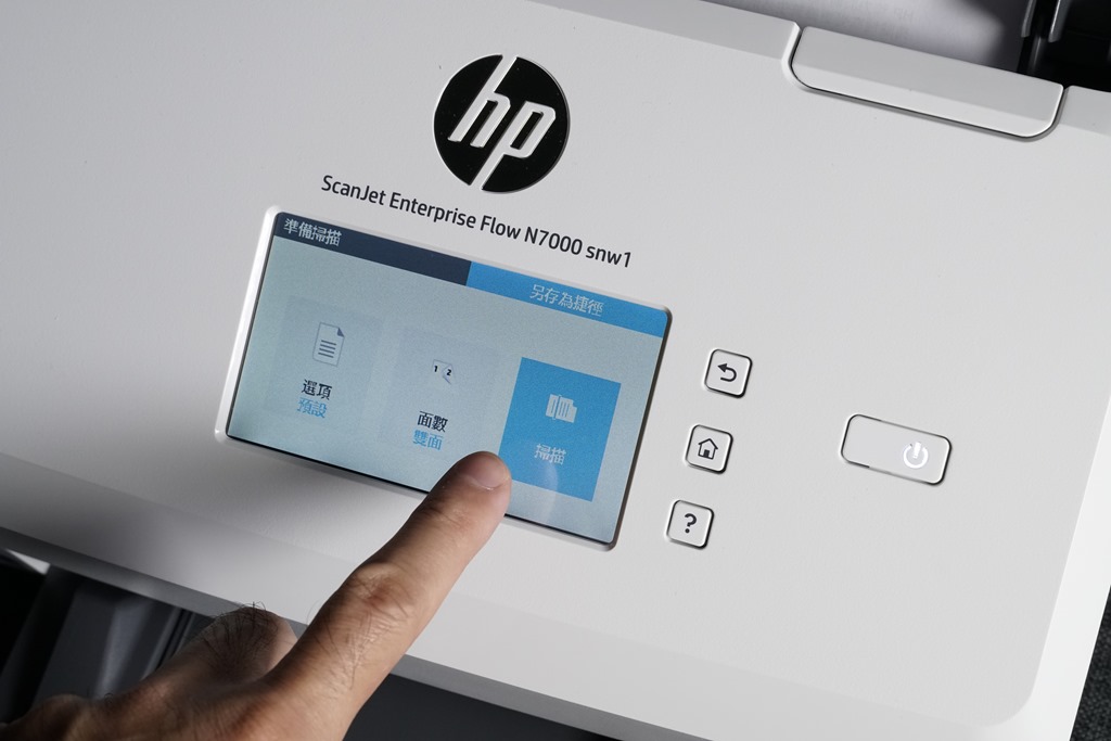 在 ScanJet Enterprise Flow N7000 機型上,有著 4.3 吋的彩色觸控螢幕,你不用透過電腦,只需操作面板上的圖是即可簡單處理,接著我們就從如何設定這台有效率的掃描器繼續下去。