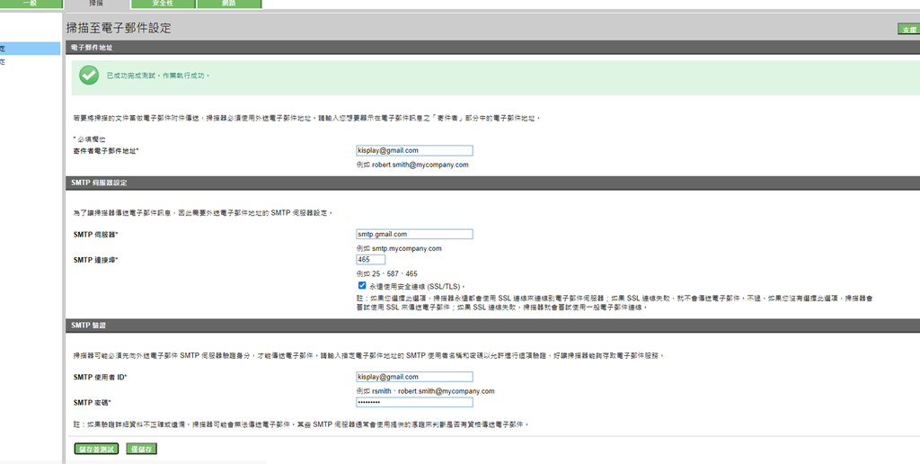 除了網路資料夾部分,也可以設定 SharePoint、掃描至電子郵件、指定電子郵件通訊錄…設定方式就讓大家自行閱讀說明書,這邊就不再贅述。