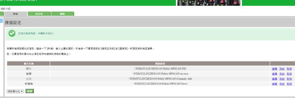 設定後會有列表讓你確認網路路徑位置是否正確,也可以進行網路路徑是否正確可連線的測試,當然要編輯或刪除都沒問題。