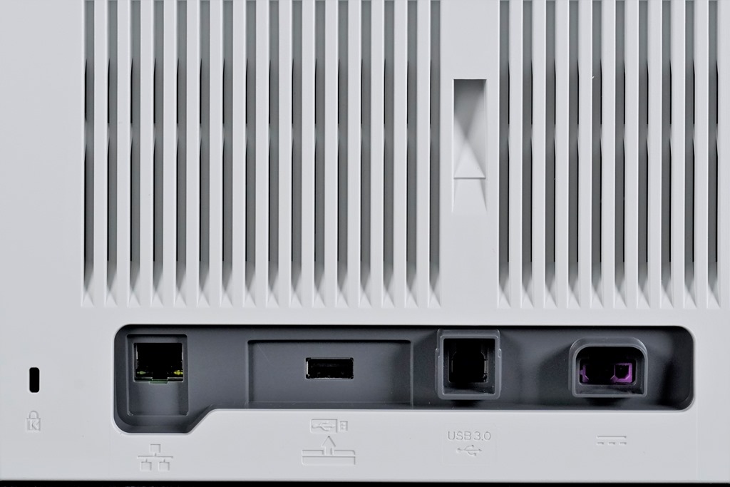 ScanJet Enterprise Flow N7000 具由無線網路連線能力,可使用區域網路也可利用 Wi-Fi Direct 以行動裝置連線進行無線掃描,在機身背後依然有著 RJ-45 有線網路孔,有著更穩定的連線能力。另外還有著可使用 USB 隨身碟以儲存掃描資料的 USB 槽,也有著可直接與電腦連線的 USB 連接線插孔。