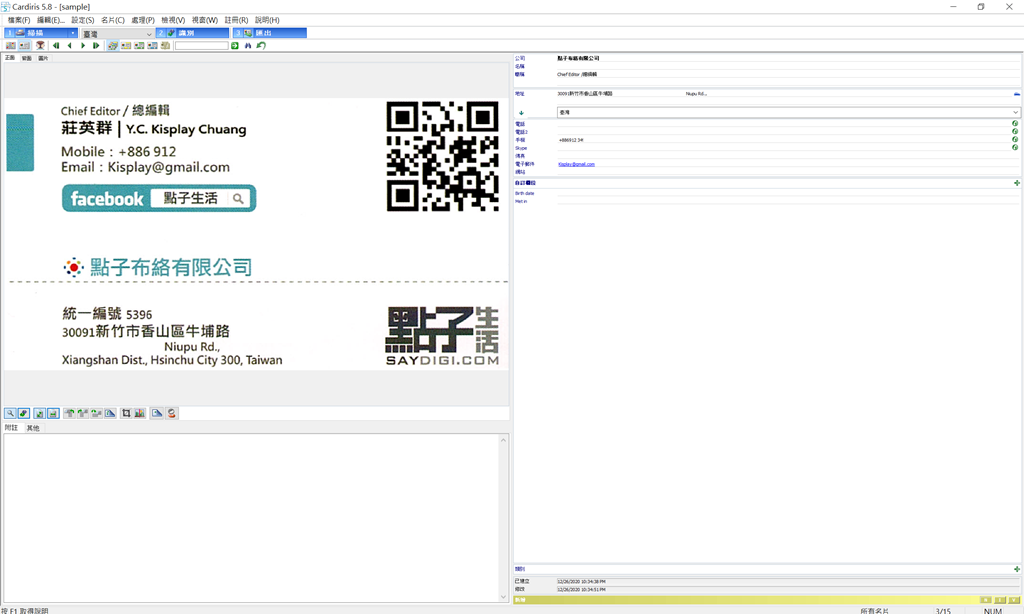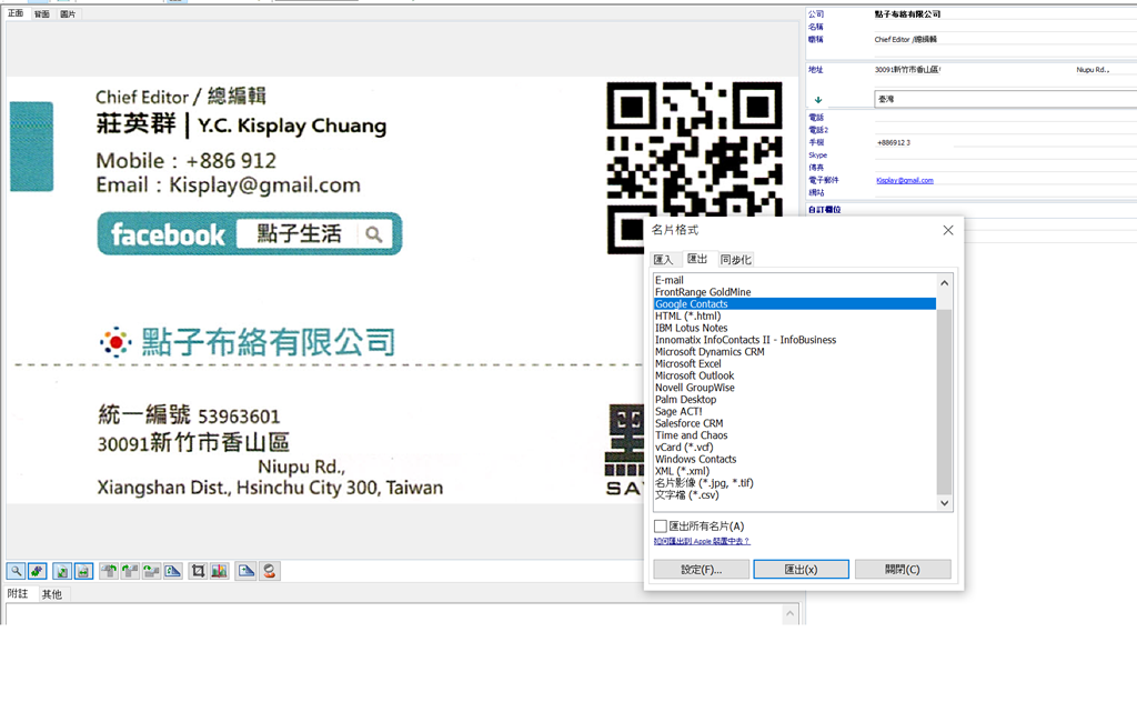 掃描辨識後的資訊都會列在右邊的欄位中,無論是公司名稱、地址、電話與 email 正確率都非常高,當然如果有些資訊有誤差,也可以手動更改,這比起一張張手動整理要來的更快速方便。