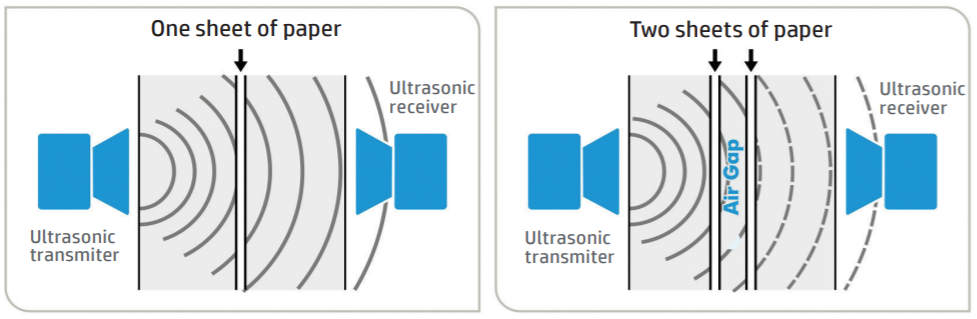 他的技術原理會先以多段取紙方式進行,也就是說會將一大疊紙先分為一小疊紙,再將小疊紙分為更小疊紙後,從中抽取一張紙來進行掃描。在取紙後,馬上會有超音波掃描感測器來確認是否真的只有取一張紙,如果發現有兩張以上的紙,就會立刻停止進紙通知錯誤。停下來後你不用全部重新掃描一次,原本掃描的文件已經儲存在設備中,只要由中斷那一頁開始繼續掃描即可。