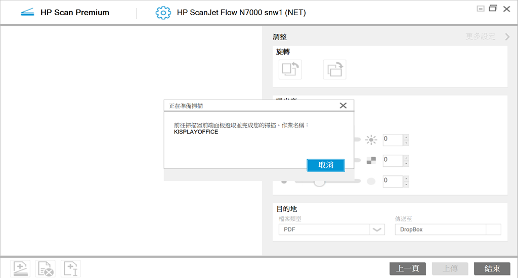 當按下掃描後,就可以拿著文件到掃描器上放入文件與準備掃描。