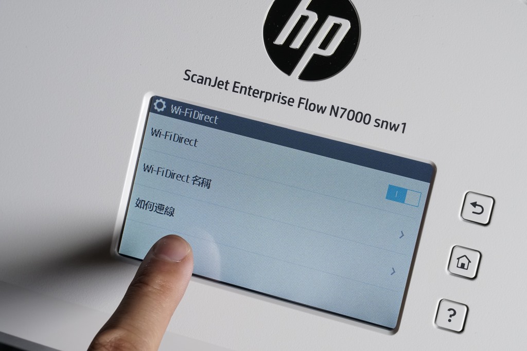 這邊就以 Wi-Fi Direct 方式說明如何使用手機進行掃描,先開啟掃描器上的網路選項。
