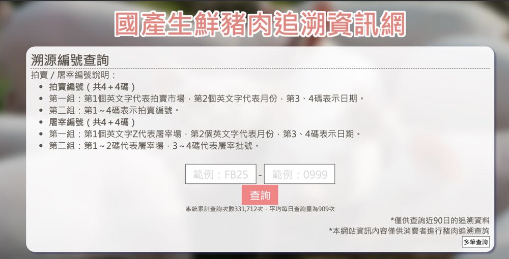 如果是習慣去傳統市場購買豬肉的朋友也不用擔心,還有一個「國產生鮮豬肉追溯標示」能夠透過掃描上方 QR-Code 後,輸入牌上的 8 個號碼,來搜尋國產豬的產地,買得更加放心!