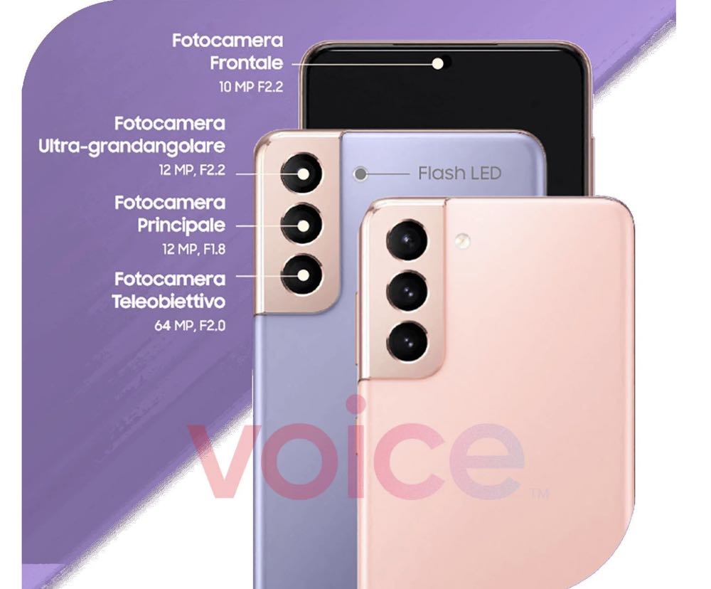 根據目前外媒資料顯示,三星 Galaxy S21 5G 和 Galaxy S21+ 5G 兩款將配置 12MP F2.2 超廣角主鏡頭、12MP F1.8 主鏡頭、64MP F2.0 望遠鏡頭 三鏡頭組合配置,10MP F2.2 單前置鏡頭。