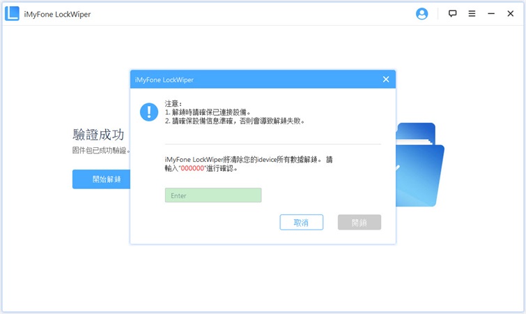 步驟3:介面會跳出「開始解鎖」的選項。點選之後,輸入「000000 (6個零)」以確認同意將裝置解鎖。最後要做的就是耐心等待了~
