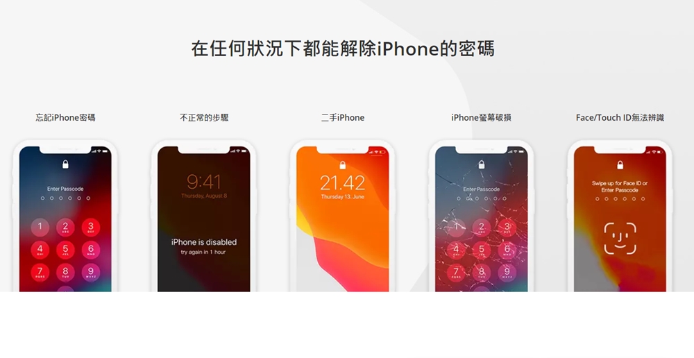 iMyFone LockWiper 是一款能夠快速解除 iOS 設備各種鎖碼狀況的工具軟體,不管是忘記螢幕解鎖密碼( Face ID 或是 Touch ID),它都能夠幫上忙!更厲害的是,如果你的手機螢幕破損或是已停用,也還是可以使用 iMyFone LockWiper 來幫忙。