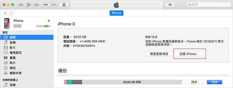 切記,iTunes 在解鎖密碼的同時,也會將手機的其他資料一併還原,恢復到出廠預設值。如果你沒有備份手機的習慣,就要在這時候和所有手機中的照片、訊息說再見。如果希望保留這些內容,可以直接下滑看第三個方法