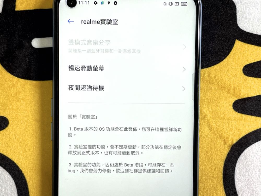 還有一個也很有趣的就是設定中有個「realme 實驗室」,裡面就很像 LINE Lab 一樣,會有一些準備推出的新功能,也會在這邊搶先開放嘗鮮,未來不一定真的會更新到正式版之中,所以如果也是喜歡嚐鮮新功能的 realme 朋友,別錯過這個好地方唷!