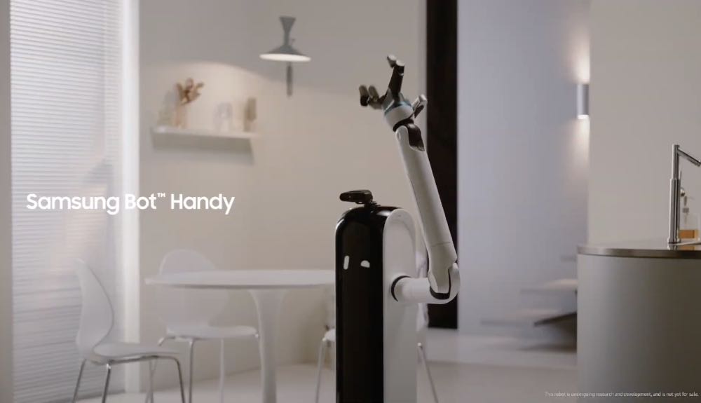 Samsung Bot Handy: 正在開發中的 Samsung Bot Handy 則是比教偏向拿取物品的設計。Samsung Bot Handy 會透過先進 AI 技術,能識別和拿取各種大小、形狀和重量的物品,作為使用者的勞力替身,並協助打理家事。Samsung Bot Handy 能區分各種物體的組成材質,再以適當力道拿取及移動居家物品,於家事上助使用者一臂之力,例如:清掃淩亂房間、整理飯後碗盤,成為值得信賴的居家夥伴。