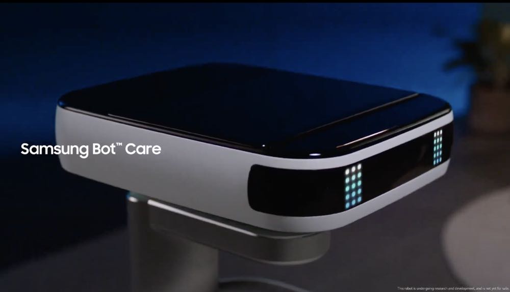 Samsung Bot Care:三星機器人陣容不斷擴大,Samsung Bot Care 是三星最新開發的產品,能利用 AI 識別回應使用者行為,發揮助理機器人及陪伴機器人的雙重作用。除了協助打理生活雜務,它還能學習使用者作息、傳送提醒通知,以幫助使用者度過忙碌的一天。