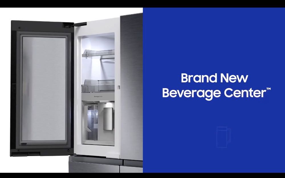 在 2020 CES 上層亮相過的彩色冰箱,最新版本將能夠更換面板,三星並將帶來多款顏色與材質,讓使用者能自由調整冰箱的外型和功能。今年春季會在北美上市 4 門機型,並且配備全新的 Beverage Center,用戶能輕鬆取用飲水機及自動注水式儲水罐,更擁有雙自動製冰機,不僅能製作普通方形冰塊,也能製作「碎冰」,滿足使用者對冷飲的不同喜好。