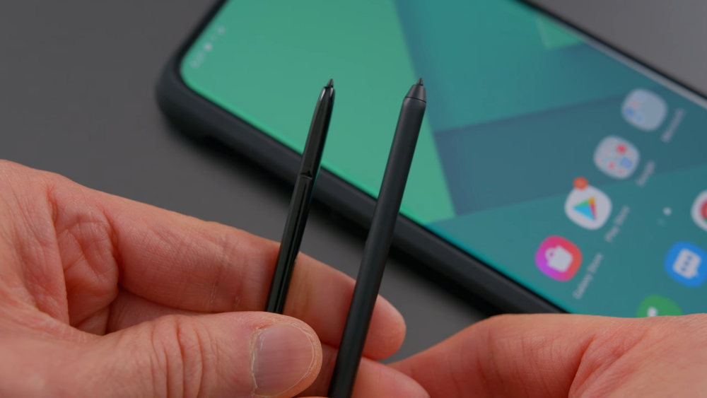 首先,S21 Ultra 的 S Pen 是加購配件 ,用戶還必須另外購買專屬保護殼;保護殼的左側設計了一個凹槽來收納 S Pen。這樣的設計也間接影響到觸控筆的功能,例如新的 S Pen 少了藍牙功能,因此也不支援 Note 系列的遠端操控。另外,有人將兩款 S Pen 相比較,發現相較於 Note 系列細小的 S Pen ,S21 Ultra 版本的 S Pen 體積更粗、書寫手感更良好。