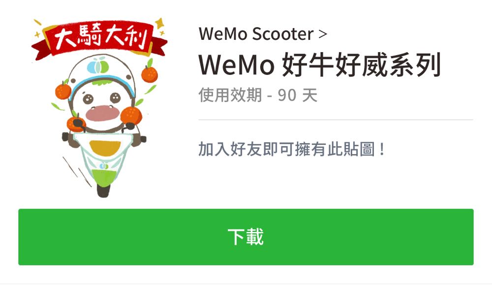 迎接農曆新年,WeMo Scooter 一起帶著消費者牛年扭轉乾坤,同步推出免費下載 WeMo 拜年 LINE 貼圖,並推出貼圖彩蛋活動,額外再抽 LINE POINTS 300 點或小時租免費騎獎項。WeMo Scooter 用牛年吉祥話跟親友拜新年,獻上春節實用好禮,讓大家過好年,從市民生活需求出發打造有溫度的交通。