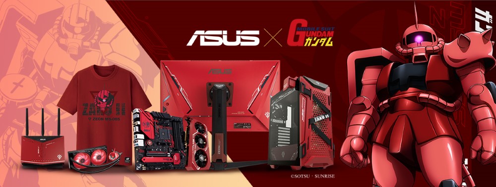 華碩鋼彈聯名新品汲取了 RX-78-2 初代鋼彈與夏亞專用薩克為發想,充分地將白色鋼彈、紅色薩克原素融入 21 款新品設計中,從主機板、顯示卡、一體式水冷、電源供應器、機殼 DIY 零組件等一應具全;電競周邊則包括螢幕、路由器、鍵盤、耳機、耳機架、鼠墊等。另外還有 T-Shirt、隨行杯等聯名小物,滿足鋼彈玩家擴充戰備的需求。