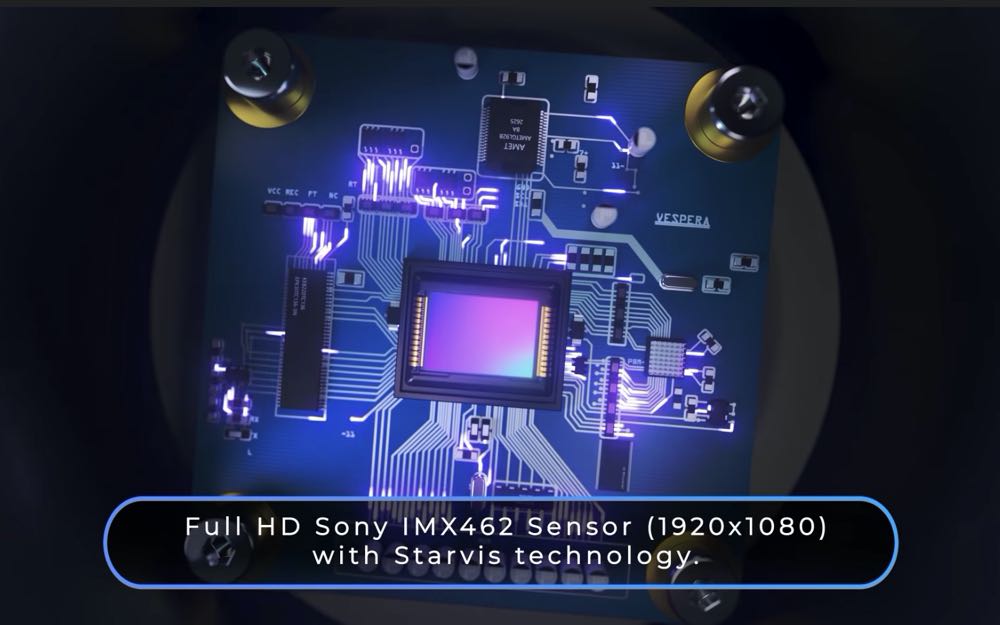 Vespera 是一款能夠和平板結合的天文攝影機,裡面有兩組共 4 個鏡片,採用 Sony 的 感測器,藉由與樹莓派 Raspberry Pi 電腦製造商合作所提供的軟體和硬體效能,與最新的 Raspberry Pi 技術來提供 Sony 感測器最佳的圖像運算。
