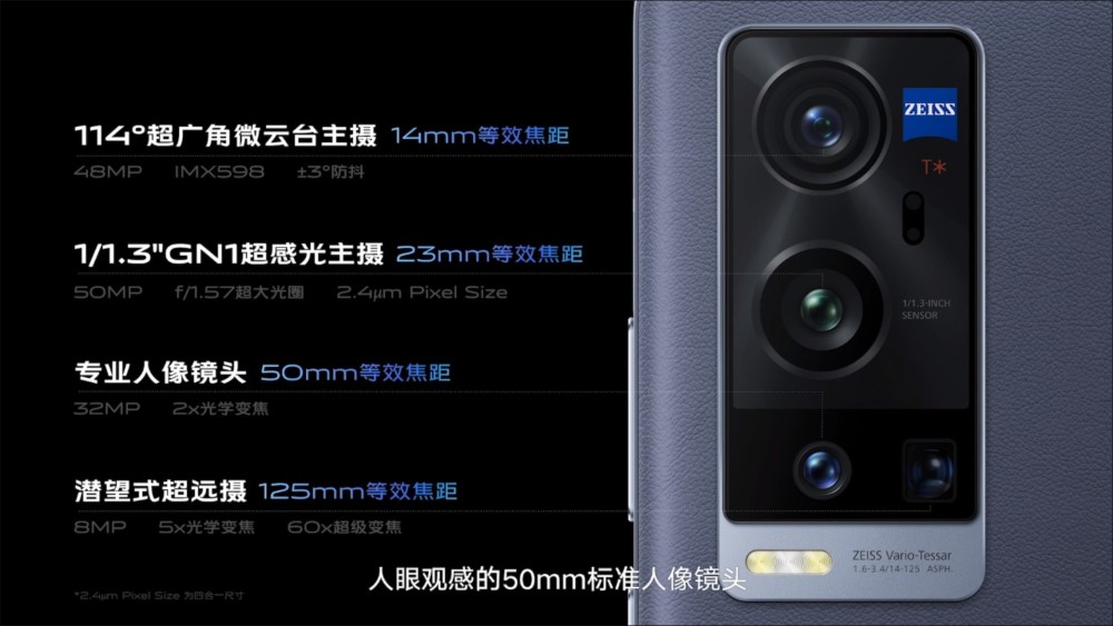 vivo X60 Pro+ 被定位為一款「具人性化」的專業影像旗艦手機,後置四鏡頭分別是搭載 GN1 感光元件的 50MP 廣角鏡頭,擁有 f / 1.57 超大光圈;第二個主攝為 48MP 超廣角微雲台鏡頭,提供 114 度視野,與上一代相比進光亮提升 104%。